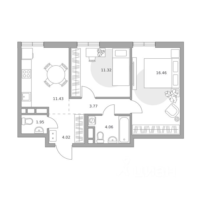 11,4 м²