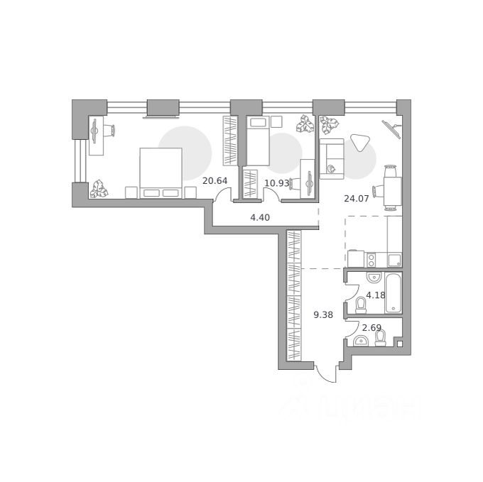 Продаётся 2-комнатная квартира 138, площадью 76,29 м², на 11 этаже в ЖК "MYPRIORITY Павелецкая" корпус 2. Стоимость — от 43531914 руб. Квартира без отделки, планировка угловая, окна во двор.