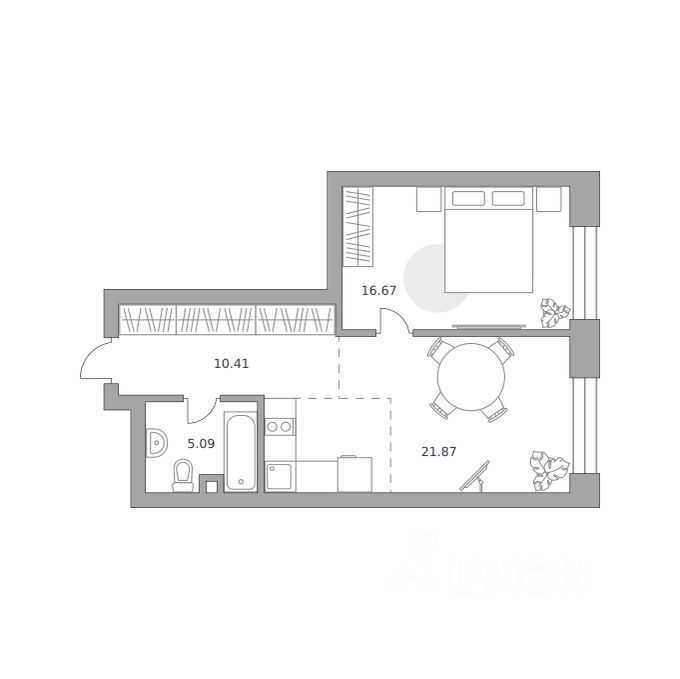 16,7 м²