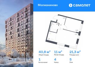 Строим кварталы для жизни с заботой о будущем. Предлагается 1-комнатная квартира комфорт-класса 40,79 кв.м в корпусе 4 на 5 этаже, в ЖК "Молжаниново"
