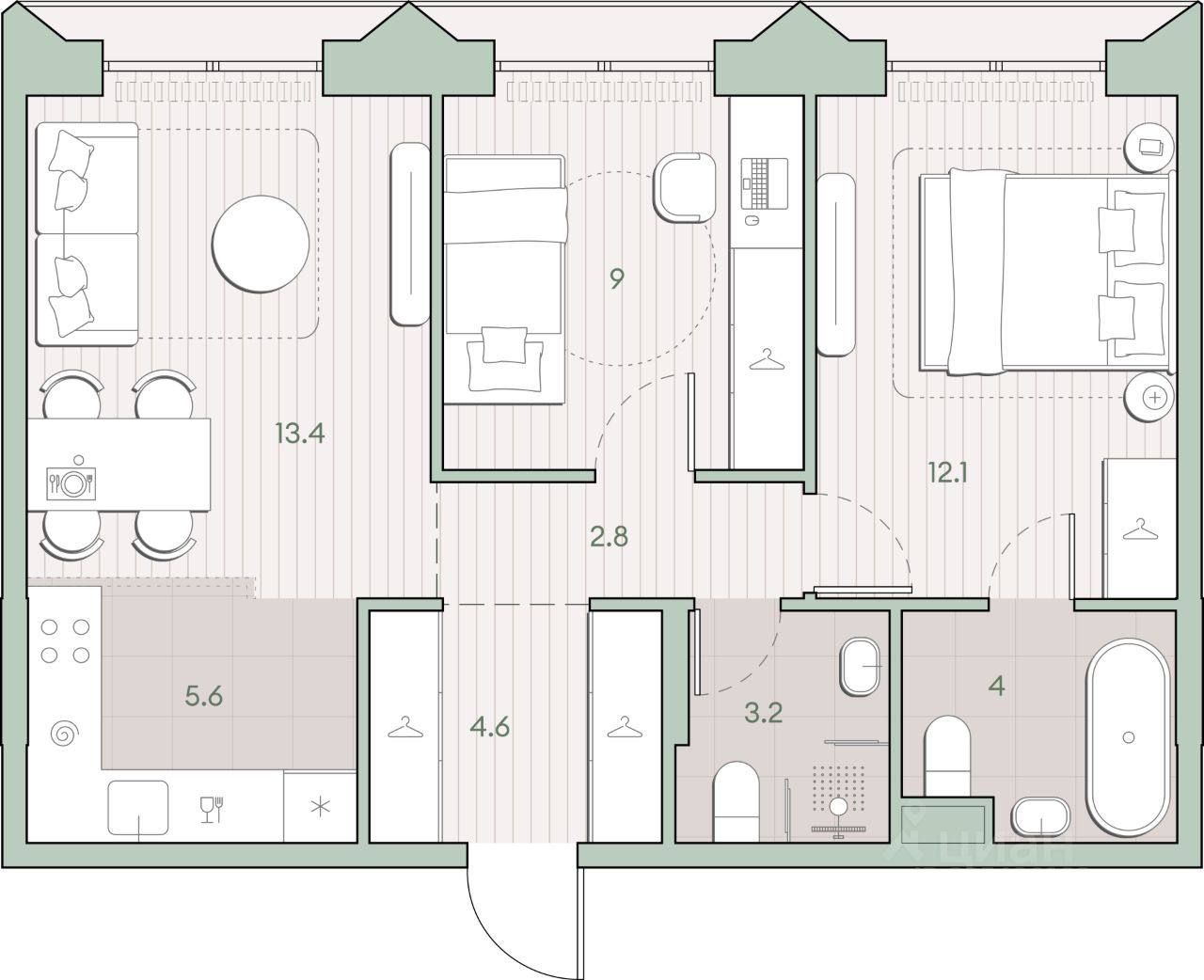 Продаётся 2-комнатная квартира общей площадью 54.7 кв.м. без отделки. Квартира расположена на 8 этаже корпуса 5.7 в жилом комплексе бизнес-класса "Среда на Лобачевского" в пешей доступности от метро "Аминьевская".