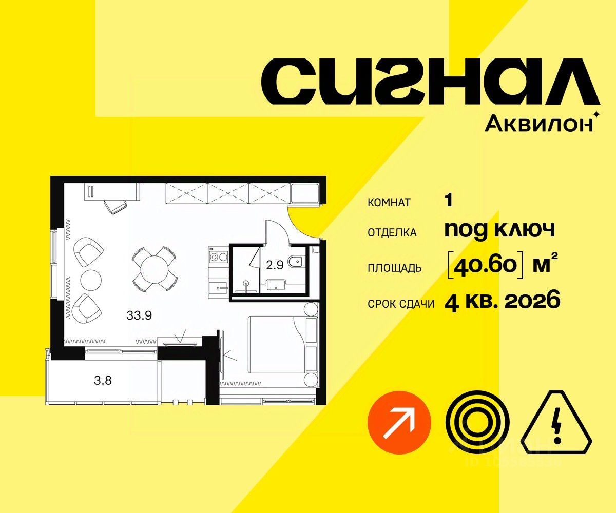 Продаются просторные апартаменты на 7 этаже 23-этажного современного апарт-комплекса Сигнал. Срок сдачи: 4 кв. 2026 г.