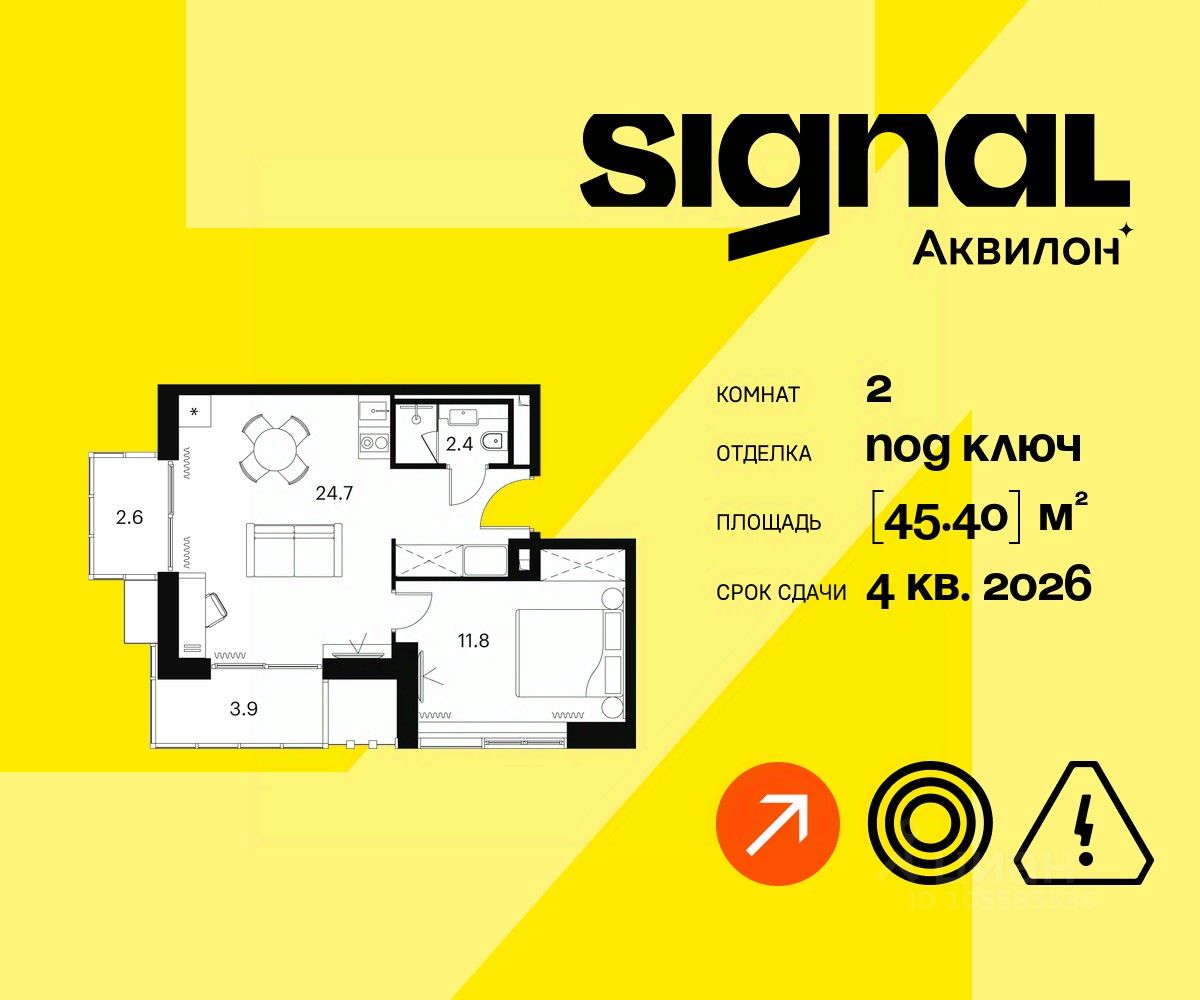 Продаются 2-комнатные апартаменты на 13 этаже 23-этажного современного апарт-комплекса Signal. Срок сдачи: 4 кв. 2026 г.