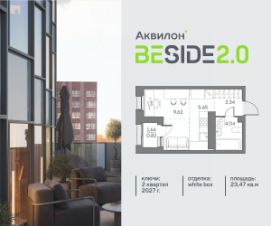 Продается просторная студия на 19 этаже современного жилого комплекса Beside 2.0. Вид из окон: во двор. Срок сдачи: 2 кв. 2027 г.