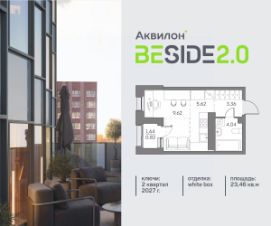 Продается просторная студия на 22 этаже современного жилого комплекса Beside 2.0. Вид из окон: на улицу. Срок сдачи: 2 кв. 2027 г.