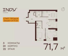 Продается просторная 3-комнатная квартира на 22 этаже жилого комплекса Indy Towers. Срок сдачи: 3 кв. 2029 г.