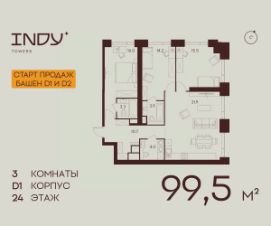 Продается просторная 3-комнатная квартира на 24 этаже жилого комплекса Indy Towers. Срок сдачи: 3 кв. 2029 г.