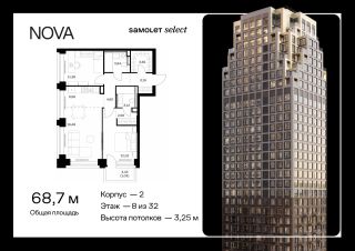 Строим кварталы для жизни с заботой о будущем. Предлагается 2-комнатная квартира премиум-класса 68,72 кв.м в корпусе 2 на 8 этаже, в ЖК "NOVA"