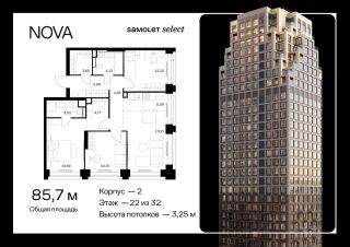Строим кварталы для жизни с заботой о будущем. Предлагается 3-комнатная квартира премиум-класса 85,69 кв.м в корпусе 2 на 22 этаже, в ЖК "NOVA"
