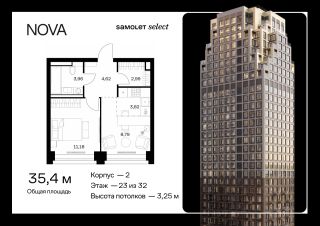 Строим кварталы для жизни с заботой о будущем. Предлагается 1-комнатная квартира премиум-класса 35,36 кв.м в корпусе 2 на 23 этаже, в ЖК "NOVA"