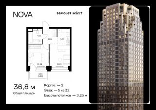Строим кварталы для жизни с заботой о будущем. Предлагается 1-комнатная квартира премиум-класса 36,78 кв.м в корпусе 2 на 5 этаже, в ЖК "NOVA"