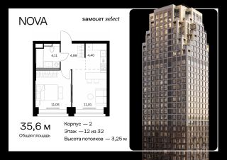 Строим кварталы для жизни с заботой о будущем. Предлагается 1-комнатная квартира премиум-класса 35,56 кв.м в корпусе 2 на 12 этаже, в ЖК "NOVA"