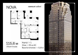 Строим кварталы для жизни с заботой о будущем. Предлагается 3-комнатная квартира премиум-класса 115,58 кв.м в корпусе 1 на 35 этаже, в ЖК "NOVA"