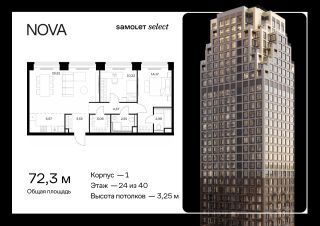 Строим кварталы для жизни с заботой о будущем. Предлагается 2-комнатная квартира премиум-класса 72,34 кв.м в корпусе 1 на 24 этаже, в ЖК "NOVA"