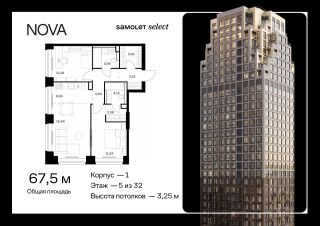 Строим кварталы для жизни с заботой о будущем. Предлагается 2-комнатная квартира премиум-класса 67,5 кв.м в корпусе 1 на 5 этаже, в ЖК "NOVA"