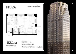 Строим кварталы для жизни с заботой о будущем. Предлагается 2-комнатная квартира премиум-класса 62,06 кв.м в корпусе 1 на 7 этаже, в ЖК "NOVA"