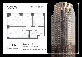 Строим кварталы для жизни с заботой о будущем. Предлагается 2-комнатная квартира премиум-класса 60,97 кв.м в корпусе 1 на 16 этаже, в ЖК "NOVA"