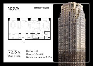 Строим кварталы для жизни с заботой о будущем. Предлагается 2-комнатная квартира премиум-класса 72,34 кв.м в корпусе 3 на 16 этаже, в ЖК "NOVA"
