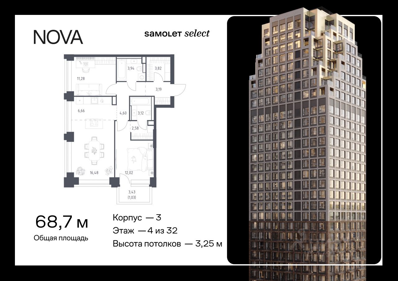 Строим кварталы для жизни с заботой о будущем. Предлагается 2-комнатная квартира премиум-класса 68,72 кв.м в корпусе 3 на 4 этаже, в ЖК "NOVA"