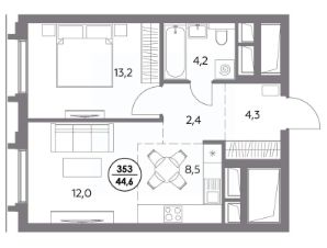 В премиум-квартале "Дом 56" на Бауманской напрямую от девелопера ГК "Галс-Девелопмент" представлена 1-комнатная квартира на 24 этаже общей площадью 44.60 м².
