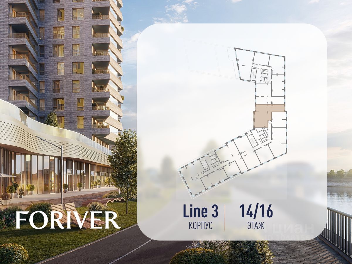 Прямая продажа от застройщика. В жилом квартале, расположенном в Даниловском районе Москвы, продаётся 3-комнатная квартира площадью 105.70 кв.м без отделки. Квартира расположена на 14 этаже 16-этажного дома, корпус Line 3, в жилом квартале бизнес-класса Foriver.
