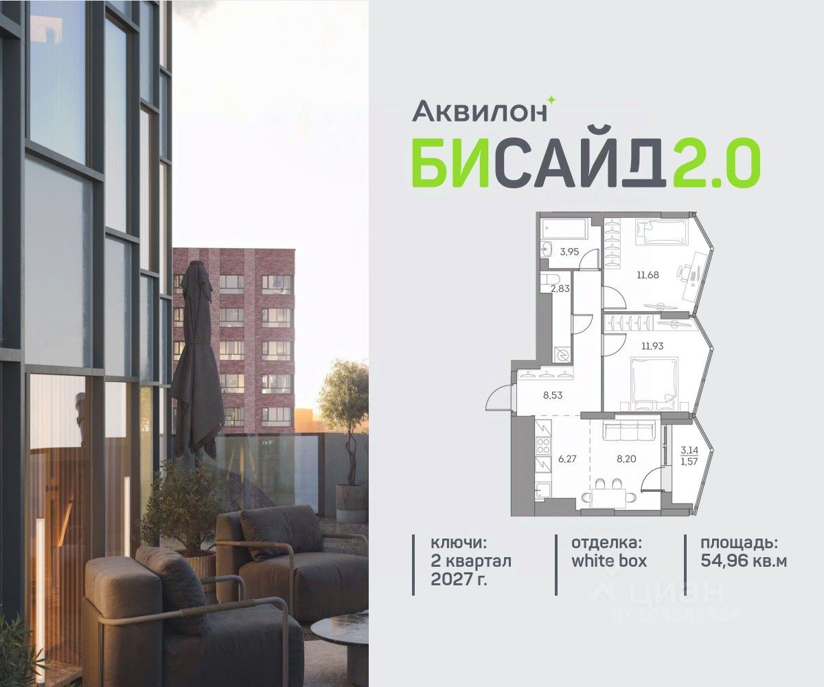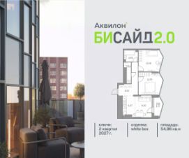 Продается 2-комнатная квартира на 19 этаже современного жилого комплекса Бисайд 2.0. Вид из окон: на улицу. Срок сдачи: 2 кв. 2027 г.