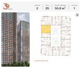 Продается двухкомнатная квартира в ЖК "Проспект 39" по адресу Москва, ЮВАО, Рязанский проспект, вл. 39, к. 2. Общая площадь квартиры - 50,80 кв.м., этаж 22. Стоимость квартиры - 21 346 935 р. Продаётся без отделки.
