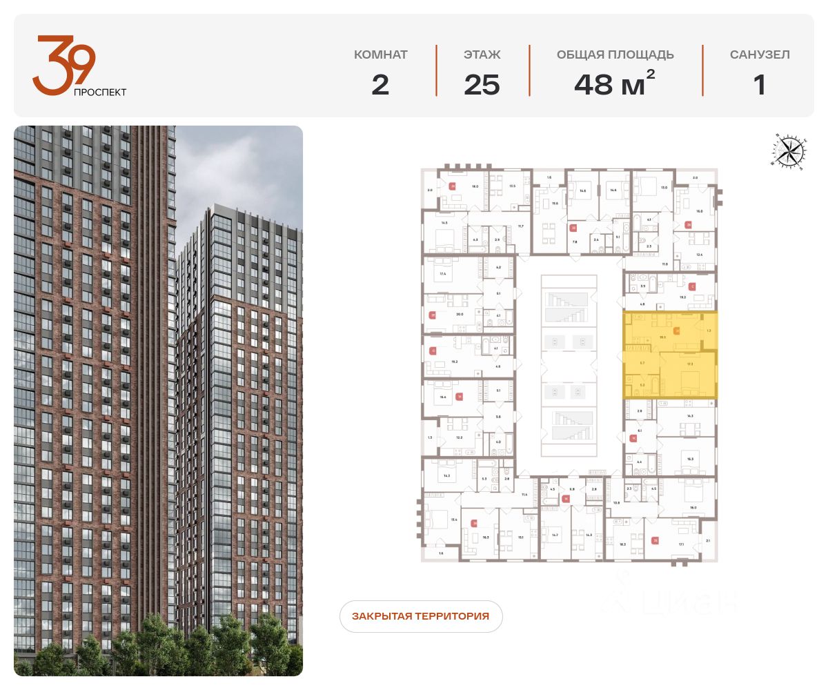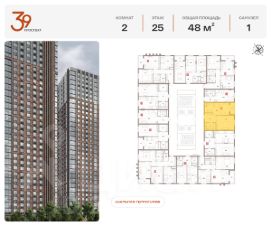 Продается двухкомнатная квартира в ЖК "Проспект 39" по адресу Москва, ЮВАО, Рязанский проспект, вл. 39, к. 2. Общая площадь квартиры - 48,00 кв.м., этаж 24. Стоимость квартиры - 20 346 438 р. Продаётся без отделки.
