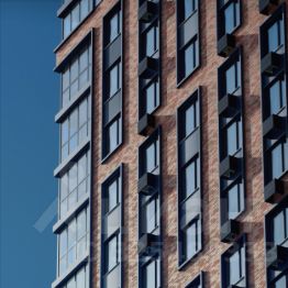 Жилой комплекс состоит из пяти монолитных башен высотой 32 этажа. В архитектуре проекта используются приемы и материалы, отражающие стиль индустриализации, характерный для данной локации. Фасады оформлены с помощью плитки, имитирующей красный состаренный кирпич, и металлических элементов дымчато-чёрного оттенка. Верх башен выполнен из композитных зеркальных панелей.