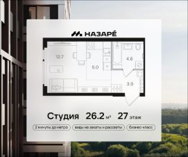 Предлагается квартира площадью 26.20 кв. м в новом современном квартале на востоке Москвы, прямо у станций метро и МЦК "Бульвар Рокоссовского". Квартира располагается в корпусе 1 на 27 этаже комплекса бизнес-класса "НАЗАРЕ'".