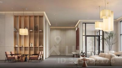 • дизайнерские лобби от бюро ABOVE ARCHITECTURE с панорамными окнами, интерьерами в теплой цветовой гамме и мягкой зоной ожидания располагаются в каждой башне;