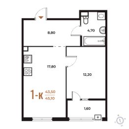 Продается 1-комн. квартира от застройщика в ЖК бизнес-класса "Новое Летово". Общая площадь: 45.1 кв.м., жилая: 12.2 кв.м., площадь кухни: 17.8 кв.м. Этаж: 2, квартира 326.