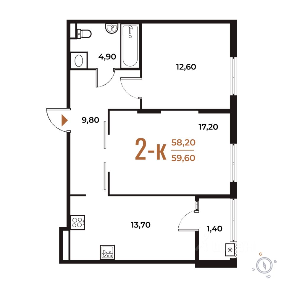 Продается 2-комн. квартира от застройщика в ЖК бизнес-класса "Новое Летово". Общая площадь: 59.6 кв.м., жилая: 29.8 кв.м., площадь кухни: 13.7 кв.м. Этаж: 2, квартира 375.