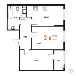 Продается 2-комн. квартира от застройщика в ЖК бизнес-класса "Новое Летово". Общая площадь: 59.1 кв.м., жилая: 28.9 кв.м., площадь кухни: 14.6 кв.м. Этаж: 4, квартира 414.