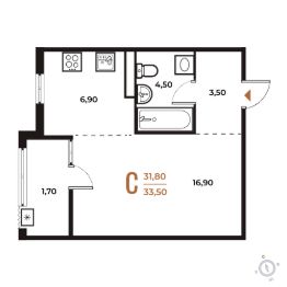 Продается студия от застройщика в ЖК бизнес-класса "Новое Летово". Общая площадь: 33.5 кв.м., жилая: 16.9 кв.м., площадь кухни: 6.9 кв.м. Этаж: 7, квартира 430.