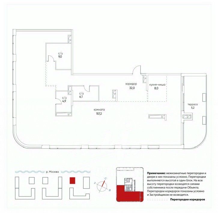 Общая площадь 226м2 на 21-м этаже. Потолки 6 м, 3 с/у, терраса. В стоимость входит 2 машиноместа на -1 этаже и кладовка.
