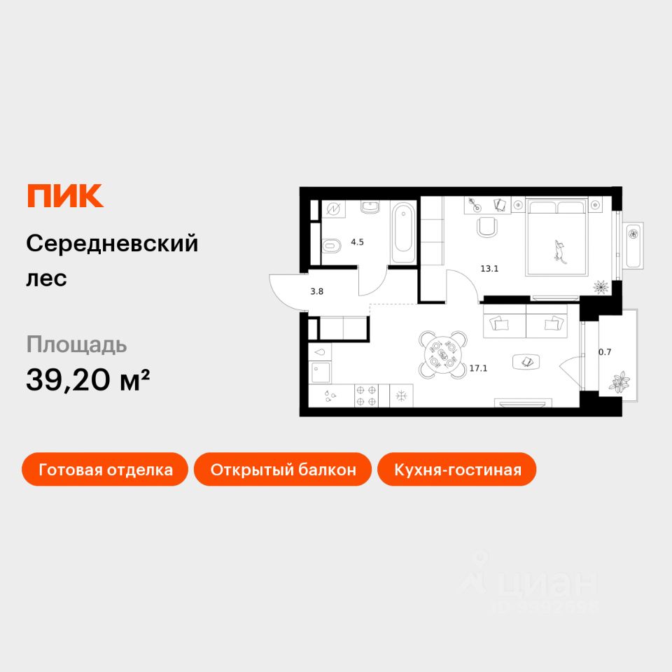 Продаётся 1-комн. квартира площадью 39,2 кв.м на 11 этаже 16 этажного дома (Корпус 2.1.5, Секция 5) проекта ПИК Середневский лес. Светлый просторный подъезд на уровне земли, функциональная планировка, большие окна, c отделкой.