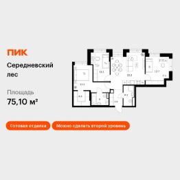 Продаётся 3-комн. квартира площадью 75,1 кв.м на 1 этаже 16 этажного дома (Корпус 2.1.6, Секция 6) проекта ПИК Середневский лес. Светлый просторный подъезд на уровне земли, функциональная планировка, большие окна, c отделкой.