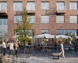 Архитекторы вдохновились локацией проекта: природные оттенки и активная пластика корпусов напоминают рельефные выступы на берегу, а окна отражают водную гладь, визуально объединяя дома с природой.