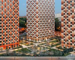 В жилой квартал входят одиннадцать корпусов, в которых есть квартиры и апартаменты. Переменная высота домов — от 11 до 24 этажей — создаёт ощущение простора и позволяет солнечному свету свободно проникать во дворы и комнаты. Фасады природных цветов украшены разными фактурными элементами, поэтому каждый дом выглядит по-особенному.
