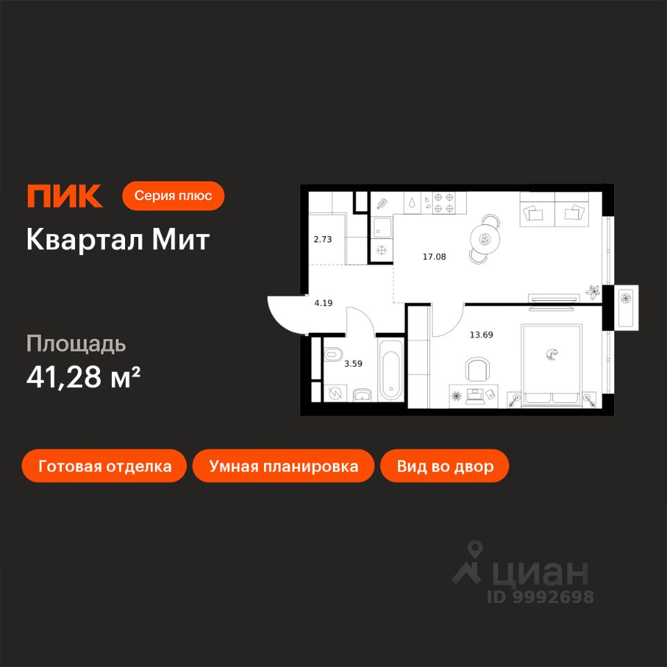 Продаётся 1-комн. квартира площадью 41,28 кв.м на 31 этаже 32 этажного дома (Корпус 3.4, Секция 4) проекта ПИК Квартал Мит. Светлый просторный подъезд на уровне земли, функциональная планировка, большие окна, c отделкой.