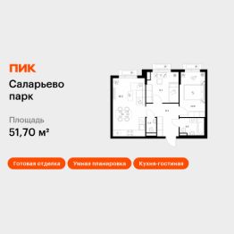 Продаётся 2-комн. квартира площадью 51,7 кв.м на 12 этаже 14 этажного дома (Корпус 69.7, Секция 7) проекта ПИК Саларьево парк. Светлый просторный подъезд на уровне земли, функциональная планировка, большие окна, c отделкой.