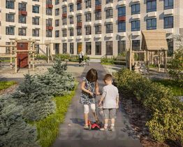 Проект состоит из трёх 17-этажных корпусов с просторными лобби с кондиционерами, а также дворами-парками с Вайфай. На первых этажах откроются магазины, кафе, салоны красоты и полезные сервисы для комфортной жизни.