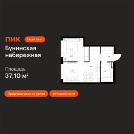 Продаётся 1-комн. квартира площадью 37,1 кв.м на 12 этаже 16 этажного дома (Корпус 2.6/1.2, Секция 2) проекта ПИК Бунинская набережная. Светлый просторный подъезд на уровне земли, функциональная планировка, большие окна, предчистовая отделка.