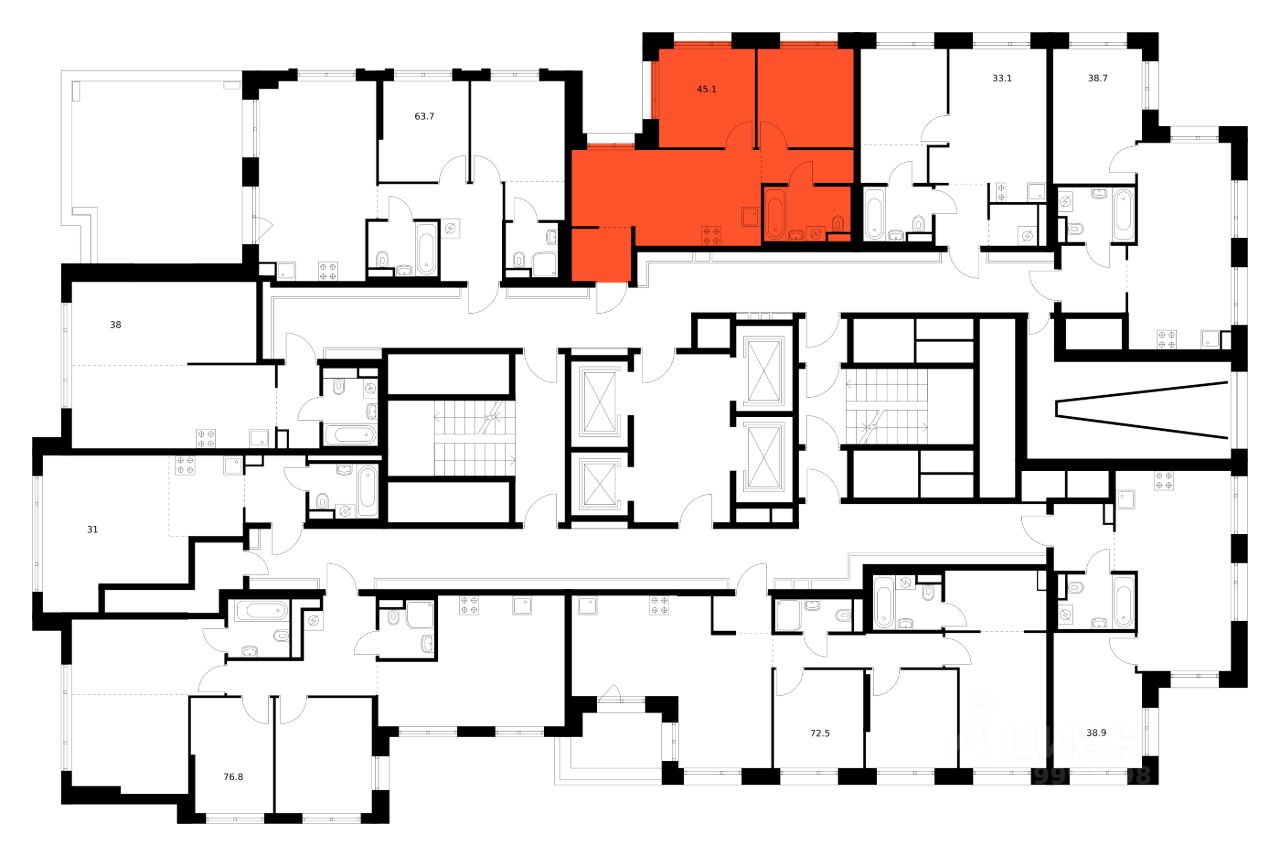 Продаётся 2-комн. квартира площадью 45,1 кв.м на 23 этаже 29 этажного дома (Корпус 2.1, Секция 1) проекта ПИК Москворечье. Светлый просторный подъезд на уровне земли, функциональная планировка, большие окна, c отделкой.