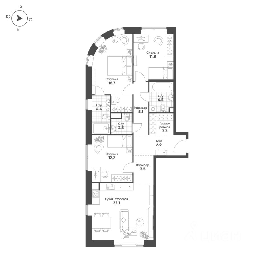 Продаётся 3-комнатная квартира в строящемся доме (Дом 103), срок сдачи: IV-кв. 2027, общей площадью 93 кв.м., на 3 этаже. Камерный проект премиум-класса от Группы "Эталон" создан для тех, кто ценит свое время и комфорт, а его расположение станет дополнительным приятным преимуществом.