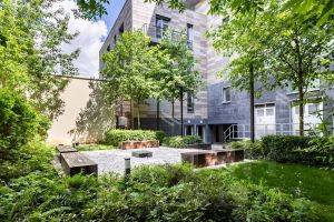 Внутренний двор комплекса скрыт от посторонних глаз и стилизован в восточном минимализме с зелеными лужайками, идеально подходящими для занятий йогой.