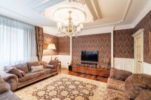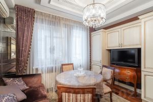 Квартира подчеркнет Ваш статус и хороший вкус. Здесь остается вся мебель и техника, что делает процесс переезда максимально комфортным и быстрым. На полу паркет - американский орех, вся сантехника Duravit, мебель Италия, изготовлена индивидуально под заказ, система кондиционирования в каждой комнате, текстиль ЛайтХаус, итальянский керамогранит Tagina, итальянские текстильные обои Limonta, итальянские люстры. Вся бытовая техника Bosch, ТВ - Samsung (саундбар + сабвуфер) в каждой комнате.
