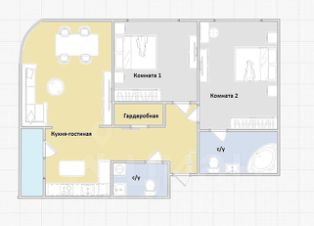 - планировка квартиры позволяет организовать большую кухню-гостиную и 2 спальни