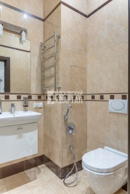 Ремонт выполнен на высоком уровне — дорогие, экологичные материалы, качественная инженерия, премиальная сантехника, мебель и техника.